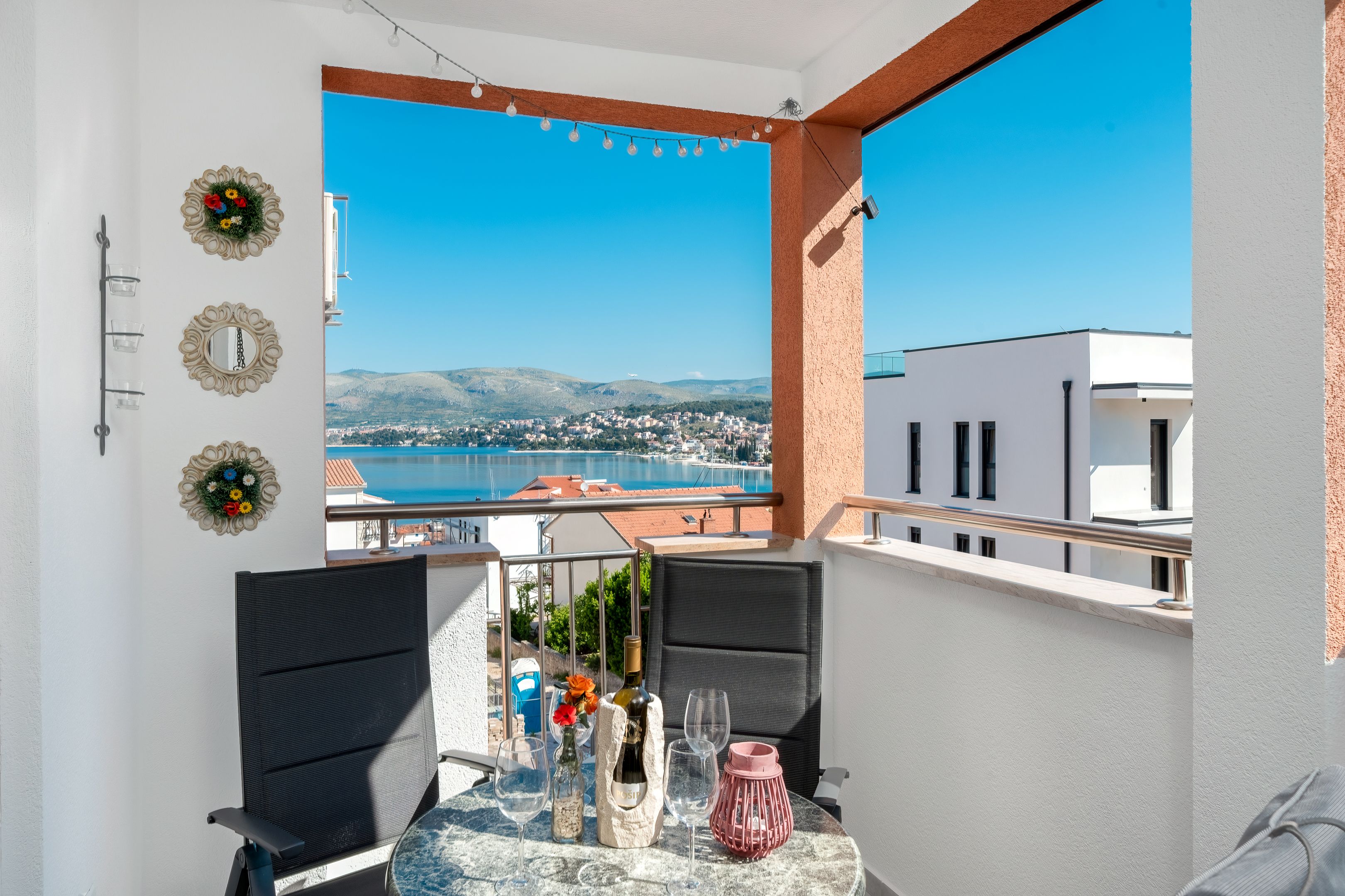 Modernes Apartment. Meerblick. 10 Min. nach Trogir (Weltkulturerbe Stadt in Mitteldalmatien).